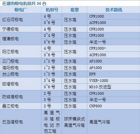 截至目前,中國大陸運(yùn)行的核電機(jī)組30臺,總裝機(jī)容量2831萬千瓦,在建的核電機(jī)組24臺,總裝機(jī)容量2672萬千瓦。其中,在建核電機(jī)組數(shù)位居世界第一,在建、在運(yùn)機(jī)組總數(shù)位居世界第三。2015年,核電發(fā)電量約占全國發(fā)電量的3.01%。