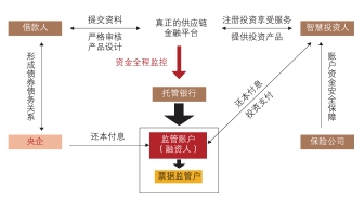 1、央/國企作為支付信用的供應(yīng)鏈金融。該產(chǎn)品一般交易結(jié)構(gòu)如下: