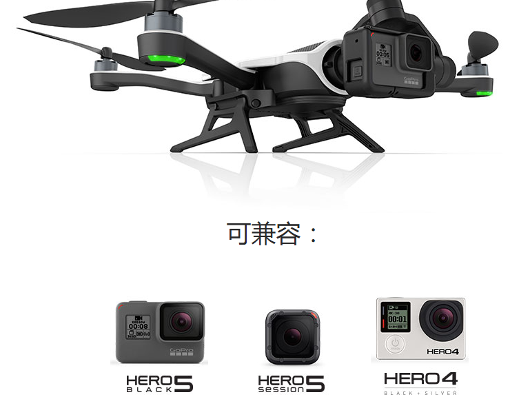 GoPro沒有像當(dāng)前無人機(jī)廠商提供一體化的解決方案,而是將無人機(jī)和攝像頭拆開了賣,而攝像頭兼容的是自家剛剛發(fā)布的Hero 5 Black、Hero 5 Session和Hero 4。
