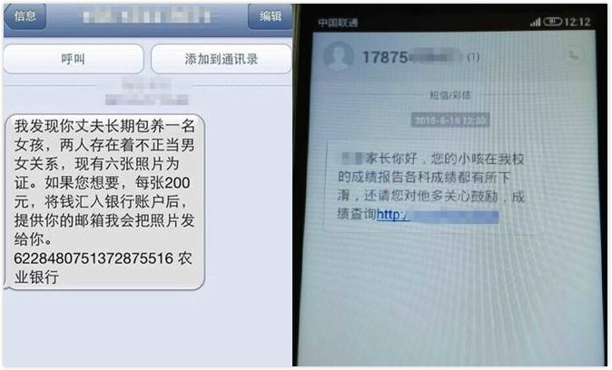 相比黑客,在今年 8 月因?yàn)樾煊裼裰蓝匦卤粧伻脘鰷u中心的手機(jī)詐騙才是我們這些普通人最常面對(duì)的威脅。手機(jī)詐騙歷史悠久,花樣層出不窮,雖然已經(jīng)從十年前的短信「爸爸我嫖娼被抓速匯錢給警察保我出來(lái),張警官,農(nóng)行賬戶 xxxxxxxxxx」的原始手段,進(jìn)化到了近年的假基站、假官網(wǎng)、煽動(dòng)性內(nèi)容(「我是你老公的小三,不信你就點(diǎn)開(kāi)照片看看我們的床照」)配上釣魚(yú)鏈接等看似需要技術(shù)的騙術(shù),但實(shí)際上都沒(méi)什么技術(shù)含量,完全不需要黑客出手,利用的還是被泄露的用戶信息與手機(jī)用戶松懈的防范心理。
