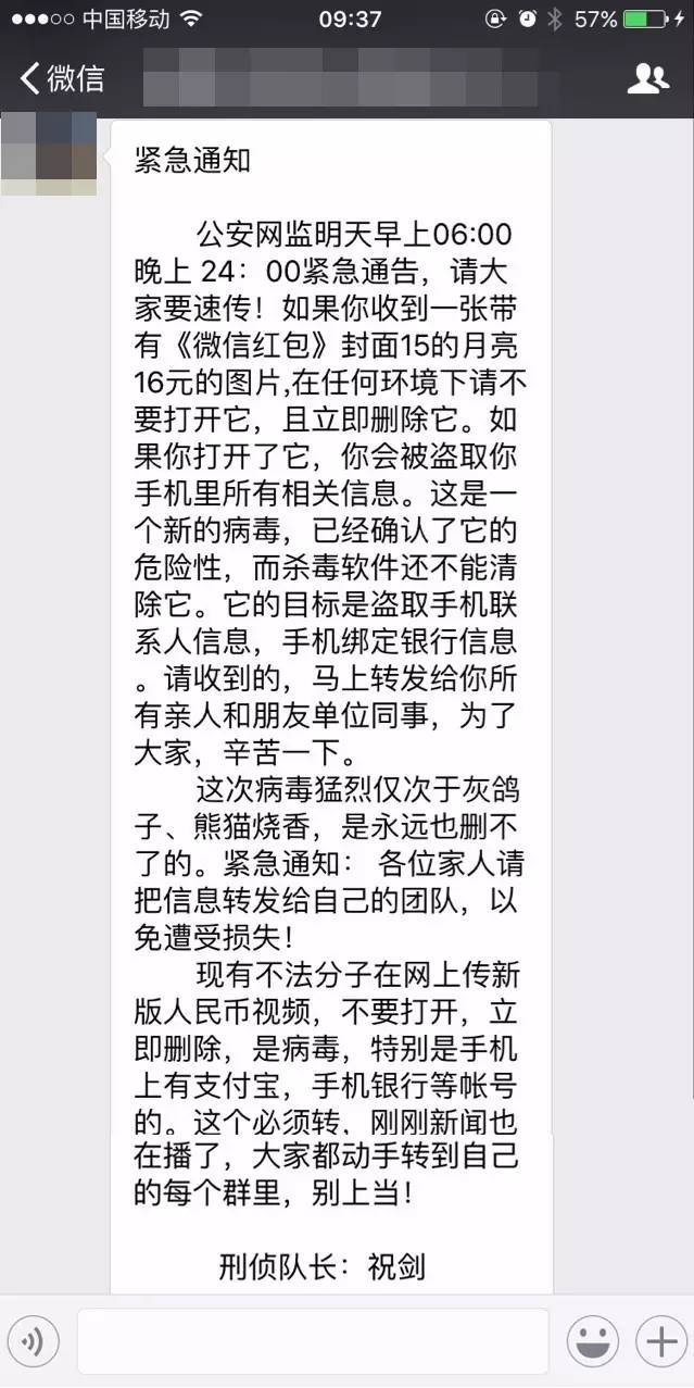 手機(jī)落入執(zhí)法部門手中,這對(duì)遵紀(jì)守法的普通人來(lái)說(shuō)畢竟是一件小概率事件,人們更加恐懼的是那種中秋前夕在各個(gè)微信群中被不斷轉(zhuǎn)發(fā)的令人嚇破膽的“紅包有毒,病毒入侵手機(jī)盜取銀行信息”(已經(jīng)被官方證明是謠言)。