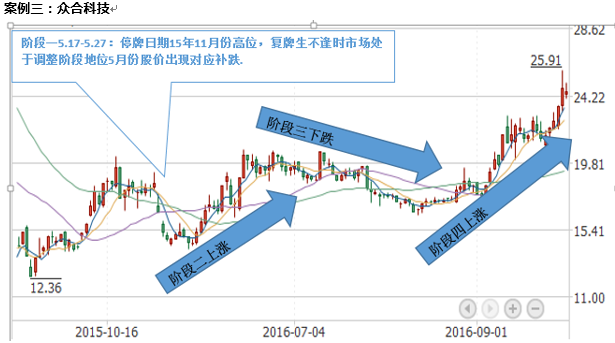 4.定增復牌出來處于市場震蕩階段,短期未有表現(xiàn),中期1-2個月走出震蕩上揚(績優(yōu)、公司不屬于小市值殼資源公司,所處行業(yè)景氣、有業(yè)績支撐)俗稱白馬/績優(yōu)定增,16年成功案例:4月份復牌的(凱樂科技、中天科技、亨通光電、聯(lián)創(chuàng)光電)