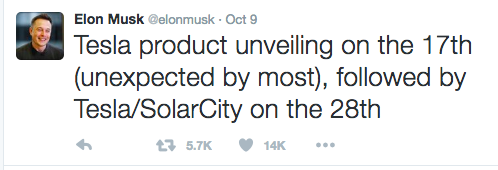 作為特斯拉的創(chuàng)始人和 CEO, 他幾天前在Twitter上說(shuō),10月17號(hào)特斯拉會(huì)有一個(gè)新產(chǎn)品發(fā)布。而且他還強(qiáng)調(diào),這個(gè)產(chǎn)品“非常讓人意想不到”(Unexpected by most)。