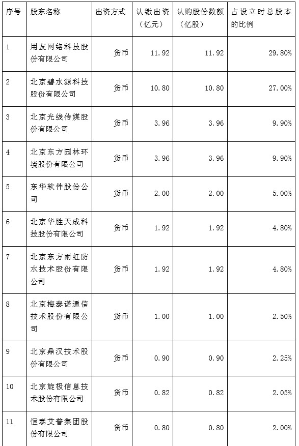 更多的細節(jié)在不久前由中關(guān)村銀行的第一大股東“用友網(wǎng)絡”所披露,其公告稱,擬與碧水源、光線傳媒等10家公司共同投資發(fā)起設(shè)立北京中關(guān)村銀行股份有限公司。擬注冊資本為40億元人民幣,擬注冊地址為北京市海淀區(qū)。