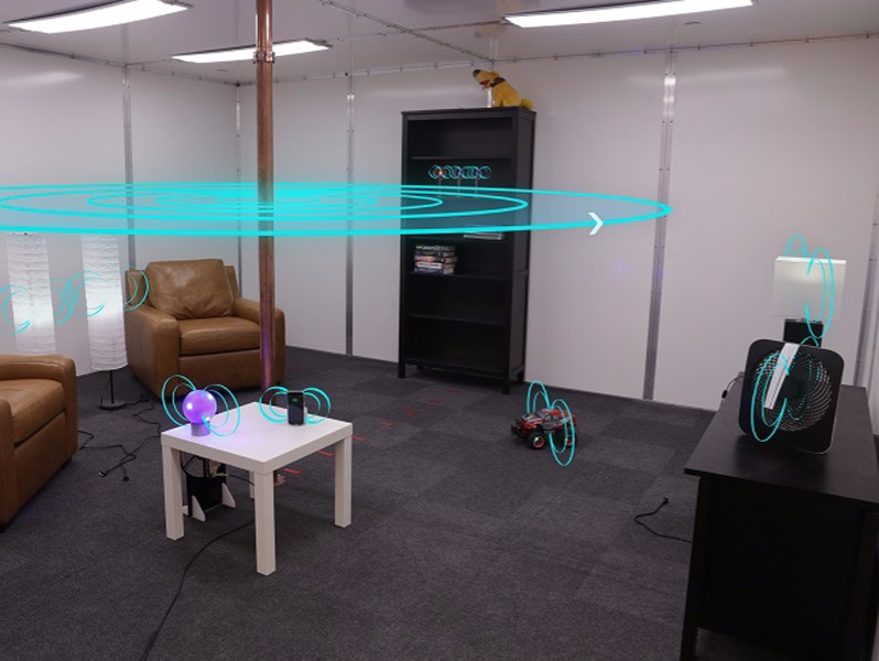 這樣聽起來(lái)可能有些晦澀難懂,我們不妨將金屬容器想象成一個(gè)54立方米的空間,這樣的空間規(guī)格接近美國(guó)大部分家庭的客廳。迪士尼研究中心已在54立方米的空間內(nèi)做了測(cè)試,在1.32MHz頻率下QSCR這樣的方式可以安全的傳輸高達(dá)1900w的有效功率,而波谷效率為40%,而峰值數(shù)據(jù)高達(dá)95%。除了移動(dòng)設(shè)備外,研究人員也拿智能電燈、智能電扇等進(jìn)行測(cè)試,測(cè)試結(jié)果顯示,這些智能設(shè)備都可以接受這樣的充電功率。換句話說(shuō),迪士尼研究中心相當(dāng)于是在一個(gè)空間內(nèi)營(yíng)造了一個(gè)無(wú)線充電的環(huán)境。