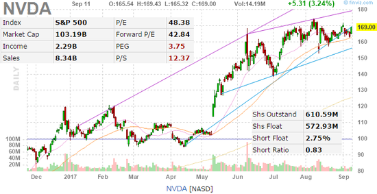NVDA于8月10日發(fā)布的第二財(cái)季財(cái)報(bào)顯示,每股收益1.01美元,好于預(yù)期值0.82美元;營(yíng)收同比增56.2%至22.3億美元,好于預(yù)期值19.6億美元。