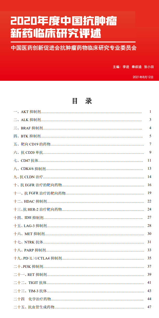 如中國(guó)醫(yī)藥創(chuàng)新促進(jìn)會(huì)于本年8月12日發(fā)布了《2020年度中國(guó)抗腫瘤新藥臨床研究評(píng)述 》,其中就從臨床角度給產(chǎn)業(yè)界提供靶點(diǎn)得研發(fā)指南,書中共列了23類關(guān)鍵靶點(diǎn)。